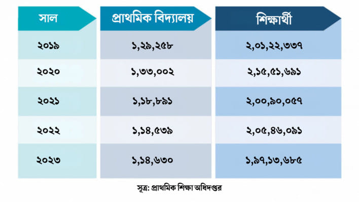জনসংখ্যা বৃদ্ধির হার কমার সঙ্গে সঙ্গে প্রাথমিক বিদ্যালয়ে শিক্ষার্থী ভর্তির হারও কমতে শুরু করেছে বলে প্রতিবেদনে বলা হয়েছে।