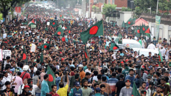 গতকাল বুধবার দিবাগত রাত ১টার দিকে সাভার পৌরসভার মুক্তিরমোড় এলাকায় বিক্ষুব্ধ জনতা বঙ্গবন্ধুর ম্যুরাল ভাংচুর শুরু করে