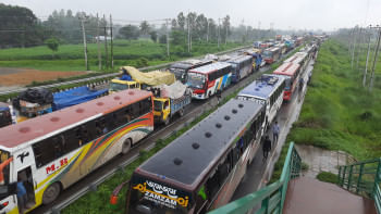 রাত থেকে সৃষ্টি হওয়া যানজট এখনো অব্যাহত রয়েছে।