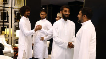 রাজধানীর শাহবাগে অবস্থিত চাঁদ মসজিদে সাদা পাঞ্জাবি গায়ে হামজা চৌধুরী, ফাহামিদুল ইসলাম, রাকিব হোসেনসহ অন্যান্যরা একসঙ্গে ঈদের নামাজে অংশ নিয়েছেন।
