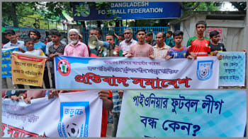 পাইওনিয়ার ফুটবল লিগ দ্রুত চালুর দাবিতে বাফুফে ভবনের সামনে বিক্ষোভ