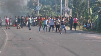 হরতাল সমর্থকদের ছত্রভঙ্গ করতে পুলিশ ছররা গুলি চালালে ৯ বছরের এক শিশুসহ পাঁচ জন গুলিবিদ্ধ হন।