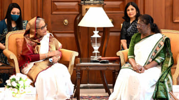 ভারতের রাষ্ট্রপতি ভবনে সে দেশের রাষ্ট্রপতি দ্রৌপদী মুর্মুর সঙ্গে সাক্ষাৎ করেছেন দেশটিতে সফররত বাংলাদেশের প্রধানমন্ত্রী শেখ হাসিনা।