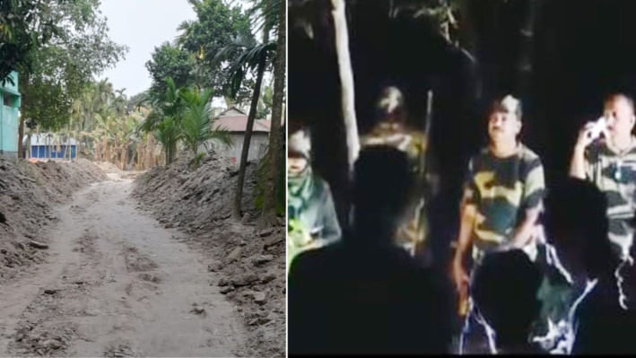 সীমান্ত লাগোয়া রাস্তার কিছু অংশ খোঁড়াখুড়ি হলে বাধা দেয় বিএসএফ।