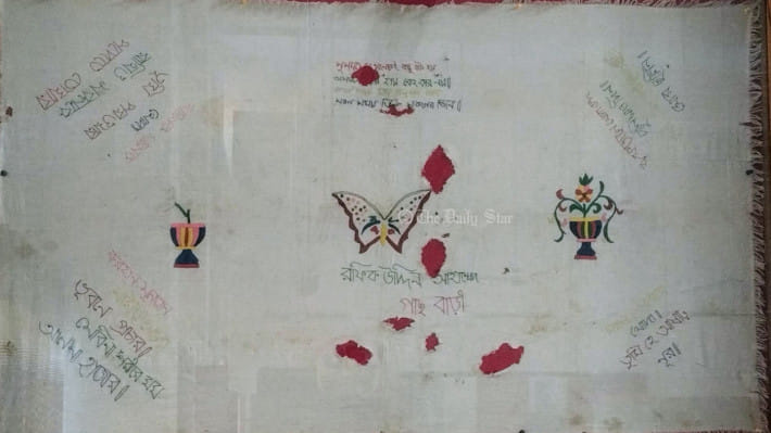 'দাদি যখন সুই-সুতোর কাজ করতেন তখন তিনি পাশে বসে দেখতেন। এভাবে তিনি দাদির কাছ থেকে সুই-সুতোর কাজ শিখেছেন'