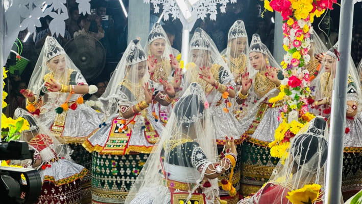 কার্তিক পূর্ণিমা তিথিতে রাসনৃত্যের বর্ণিল উৎসবে মেতে উঠেছিল মৌলভীবাজারের কমলগঞ্জের মণিপুরী সম্প্রদায়।