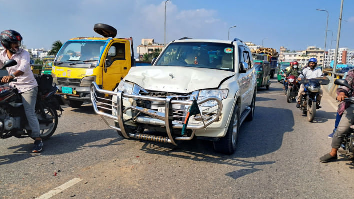 দুপুর পৌনে ১টার দিকে নগরের আখতারুজ্জামান ফ্লাইওভারের সিএন্ডবি কলোনি অংশে এই দুর্ঘটনা ঘটে।