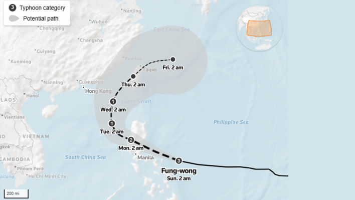 ঘূর্ণিঝড় ‘ফাং-ওয়ং’ সুপার টাইফুনে পরিণত হওয়ায় ফিলিপাইনের পূর্ব ও উত্তরাঞ্চল থেকে ১ লাখের বেশি মানুষকে সরিয়ে নেওয়া হয়েছে।