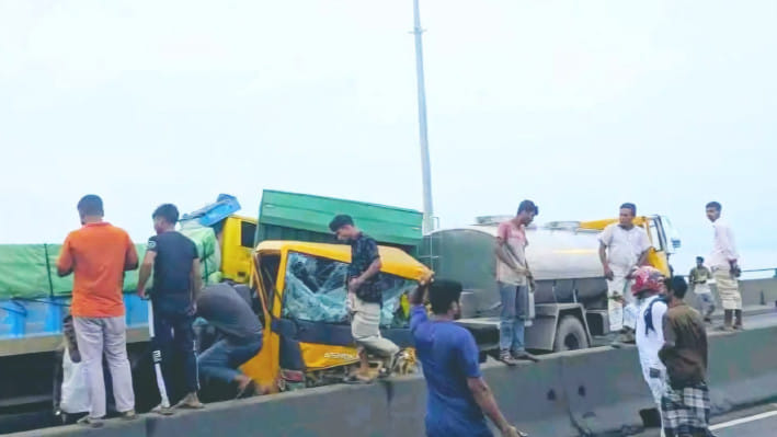 একটি ট্রাকের সঙ্গে প্রথমে একটি কাভার্ড ভ্যানের ধাক্কা লাগে। এরপর আরও তিনটি গাড়ি সেখানে ধাক্কা দেয়।