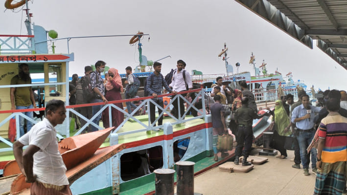 ঘাটে পৌঁছানোর কিছুক্ষণ পরই যাত্রীরা ফেরি ও লঞ্চে পাটুরিয়া এবং রাজবাড়ীর দৌলতদিয়া নৌপথ পারাপার হচ্ছেন। আবার ফেরিঘাটে দূরপাল্লার যাত্রীবাহী বাসগুলোকেও দীর্ঘক্ষণ অপেক্ষায় থাকতে হচ্ছে না।