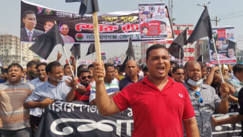 বিএনপির প্রতিষ্ঠাবার্ষিকীতে নারায়ণগঞ্জে পুলিশ ও বিএনপির নেতা-কর্মীদের মধ্যে সংঘর্ষ চলাকালে শাওন প্রধান নিহতের ঘটনায় মিছিল করেছে জেলা যুবদলের নেতাকর্মীরা।