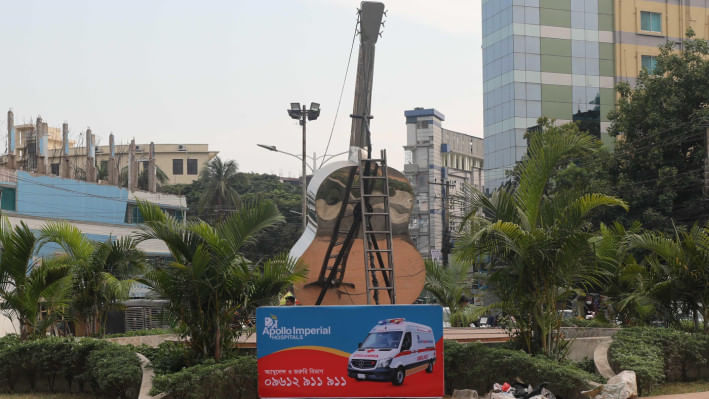রূপালী গিটার ভাস্কর্যের সামনে একটি বিলবোর্ড বসানোর পর তা নিয়ে আলোচনা-সমালোচনার পর আজ রোববার সেটি অপসারণ করেছে চট্টগ্রাম সিটি করপোরেশন (চসিক) কর্তৃপক্ষ।