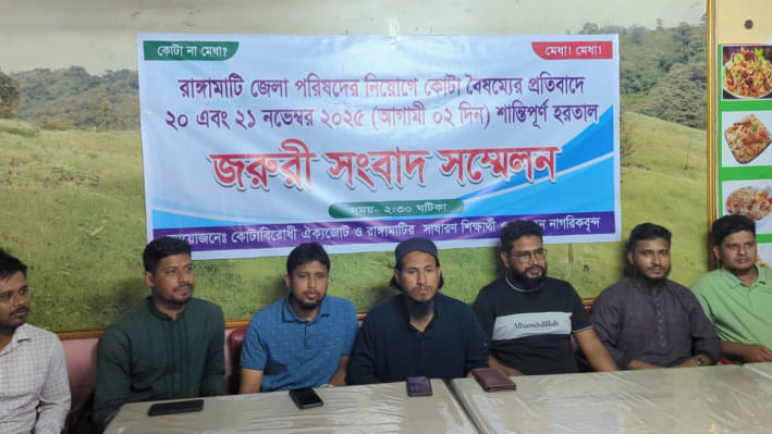রাঙ্গামাটি জেলা পরিষদে প্রাথমিক সহকারী শিক্ষক নিয়োগ পরীক্ষায় কোটা বৈষম্যের অভিযোগ এনে আগামী বৃহস্পতিবার ভোর ৬টা থেকে শুক্রবার সন্ধ্যা ৬টা পর্যন্ত হরতালের ডাক দিয়েছে ‘কোটাবিরোধী ঐক্যজোট, সাধারণ...