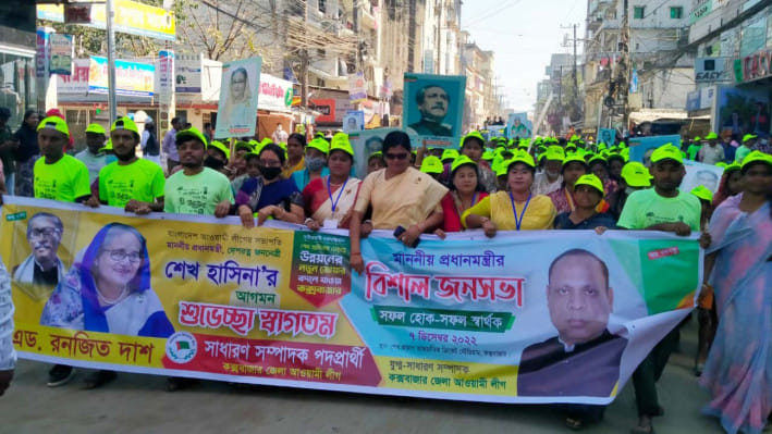 প্রধানমন্ত্রী শেখ হাসিনার জনসভা উপলক্ষে কক্সবাজারের শেখ কামাল আন্তর্জাতিক ক্রিকেট স্টেডিয়াম অভিমুখে যাচ্ছে মিছিলের স্রোত। পুরো কক্সবাজার যেন পরিণত হয়েছে মিছিলের নগরীতে।