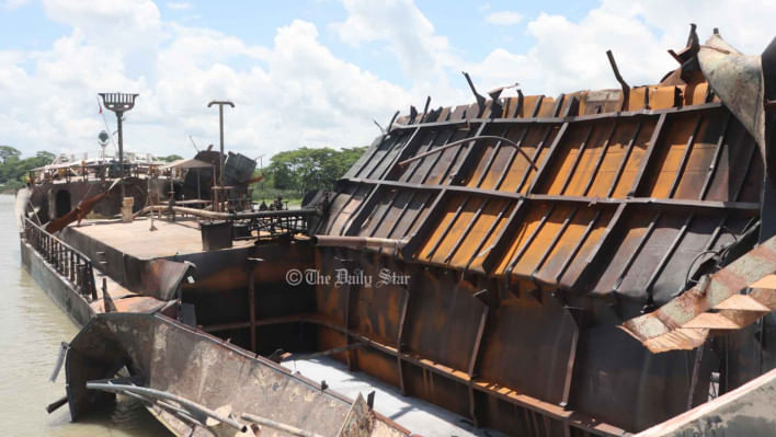 ভোলার মেঘনা নদীতে ডুবে যাওয়া তেলবাহী জাহাজ সাগর নন্দিনী-২ থেকে তেল ছড়িয়ে পড়া বন্ধে কাজ করছে কোস্টগার্ডের একটি ডুবুরি দল।