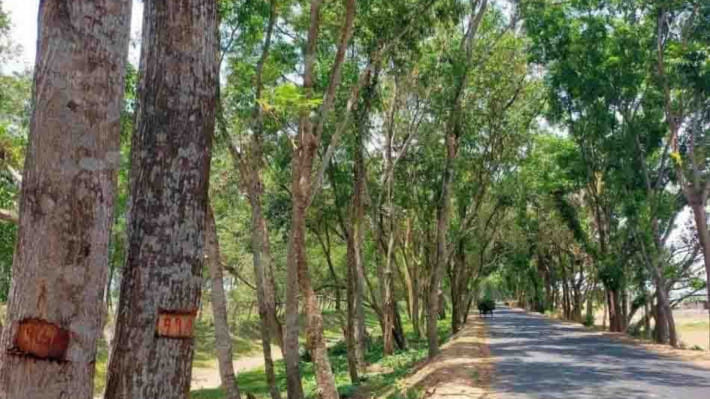 খালের পাড় ধরে চলে যাওয়া সড়কে এসব গাছ ছায়া দিয়ে যাচ্ছে।