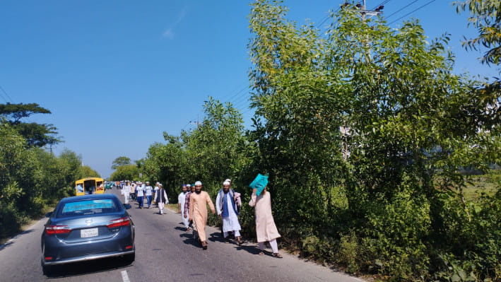 গণপরিবহন বন্ধ, হেঁটে বাড়ি ফিরছেন ইজতেমায় অংশ নেওয়া মানুষ