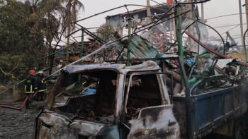 চট্টগ্রামের সীতাকুণ্ডের কদমরসুল এলাকায় সীমা রি-রোলিং মিলের অক্সিজেন প্ল্যান্টে বিস্ফোরণের ঘটনায় অনেক দূরে গিয়ে উড়ে পড়েছে ধাতব বস্তু।