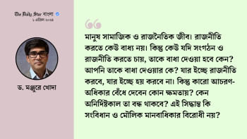 'বুয়েট তো সরকার চালায় না। চালান শিক্ষকরা। শিক্ষকরা যদি পছন্দ না করেন, শিক্ষার্থীরা যদি পছন্দ না করেন তাহলে কেন রাজনীতি চালু করতে হবে। আর যে কথা বলা হচ্ছে যে তারা সব জঙ্গি হয়ে যাচ্ছে—এমন দু-চারটা শিক্ষার্থী সবসময়ই থাকে। তাদের সংখ্যা খুব কম। আছে—অস্বীকার করার কোনো উপায় নেই। তাই বলে সবাইকে সেই কাতারে ফেলা যাবে না। তাহলে সরকারের ইন্টেলিজেন্স কী করে? স্পেশাল ব্রাঞ্চ, ডিজিএফআই, এনএসআই কী করে? যে সন্ত্রাসী তাকে ধরে তার বিরুদ্ধে ব্যবস্থা নেওয়া যায়।'