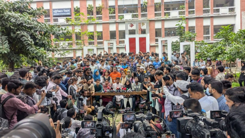 সংবাদ সম্মেলনের আগে শিক্ষার্থীরা সাত কলেজকে স্বতন্ত্র কেন্দ্রীয় বিশ্ববিদ্যালয়ে রূপান্তরের দাবিতে স্লোগান দেন। তারা বলেন, কেবল অধ্যাদেশ জারির মাধ্যমেই বিদ্যমান সমস্যার স্থায়ী সমাধান সম্ভব।