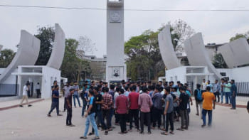 এর আগে বিকেল সাড়ে ৩টার দিকে বিশ্ববিদ্যালয় শাখা ছাত্রলীগের নেতাকর্মীরা তৃতীয়বারের মতো সংবাদ সম্মেলন করে ৫ দফা দাবি উপস্থাপন করেন।